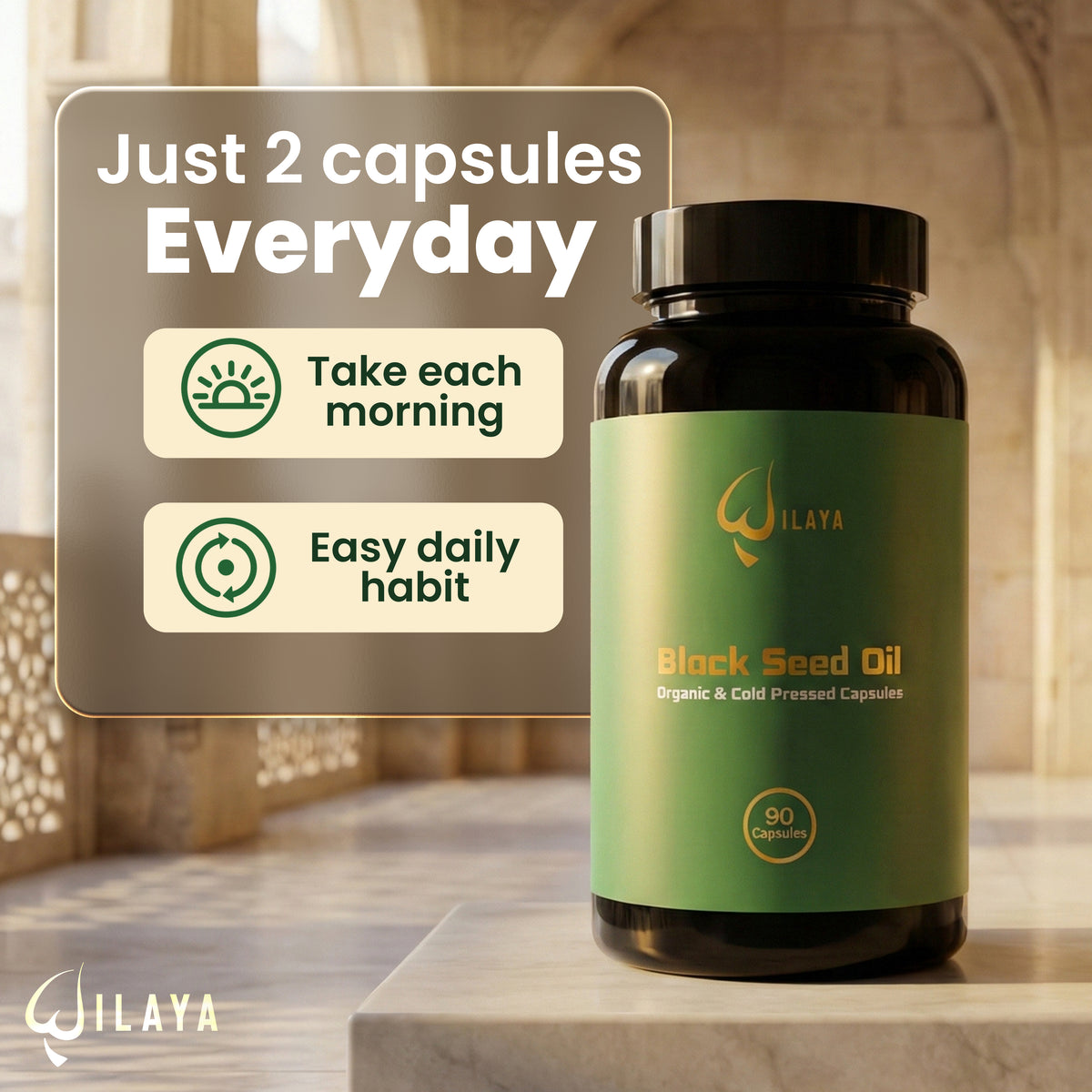 A halal black seed oil supplement designed to support everyday balance, resilience, and long-term wellbeing. Many people include black seed oil in their routine to feel more consistent energy, better day-to-day vitality, and greater peace of mind knowing they are supporting their health naturally. Easy to take daily, without disrupting your routine.